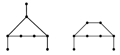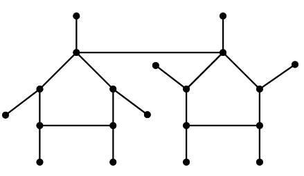 Let \(\mathcal{B}\) be the family of bicyclic graphs \(G\) that can be obtained from two graphs \(G_{1},G_{2}\in\mathcal{U}\) by adding an edge between their support vertices so that the resulting graph is bicyclic (for eaxmple see Figure 5).