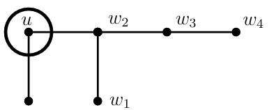 Operation \(\mathcal{O}\): Assume that \(u\) is a support vertex of \(G_{i}\). Then \(G_{i+1}\) is obtained from \(G_{i}\) by adding a path \(P_{4}:\) \(w_{1}w_{2}w_{3}w_{4}\) and the edge \(uw_{2}\) (see Figure 3).