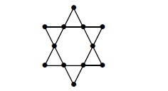 Step 4: Insert a new vertex at each new crossing of the edge. The resulting network is called the \(n-\)dimensional star of David network, which is denoted by \(SDN(n).\) The graph for the star of David network, \(SDN(2)\) is shown in Figure 4.