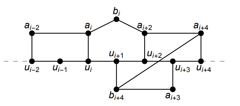 (ii) We have \(|N_{G}(u_{i-1})-V(P)|=|N_{G}(a_{i-3})-\{u_{i-3}, a_{i}\}|=1\) and \(N_{G}(u_{i-1})-V(P)=N_{G}(a_{i-3})-\{u_{i-3}, a_{i}\}\).