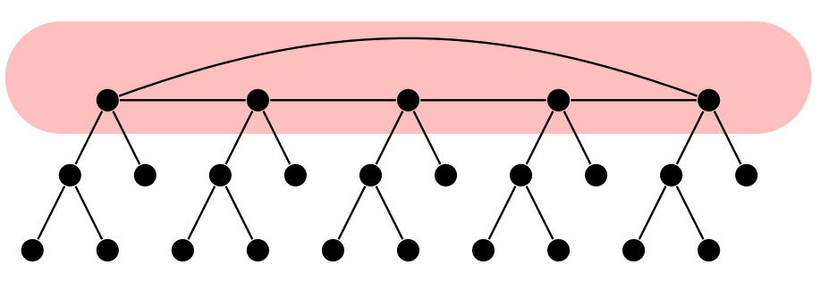 Proof of Claim. When \(T_X\) has height \(0\), \(X\) is a leaf in \(A_i\). For \(x, x' \in X\), \(L_x\) and \(L_{x'}\) just consists of \(x\) and \(x'\) respectively. They are clearly disjoint trees and cell-isomorphic. Assume that the claim holds for cells \(Y\) such that \(T_Y\) has height less than \(h\). Let \(T_X\) have height \(h\) and let the children of \(X\) in \(A_i\) be \(Y_1, Y_2, …, Y_{\ell}\). Suppose \(x \in X\) has \(t_j\) neighbors in \(Y_j\): \(u_{j,1}, u_{j,2}, …, u_{j, t_j}\). By the induction hypothesis, the set \(\{L_{u_{j,k}}, k = 1, …, t_j\}\) are pairwise disjoint trees for each \(j\). There are also no edges between \(L_{u_{j, k}}\) and \(L_{u_{j',k'}}\) when \(j \neq j'\) because it would mean that there is an edge between \(Y_j\) and \(Y_{j'}\) in \(A_i\), contradicting the tree structure of \(A_i\). Since \(x\) has edges only to the roots of the trees in \(\bigcup_{j=1}^\ell \{L_{u_{j,k}}, k = 1, …, t_j\}\), \(L_x\) is a tree.