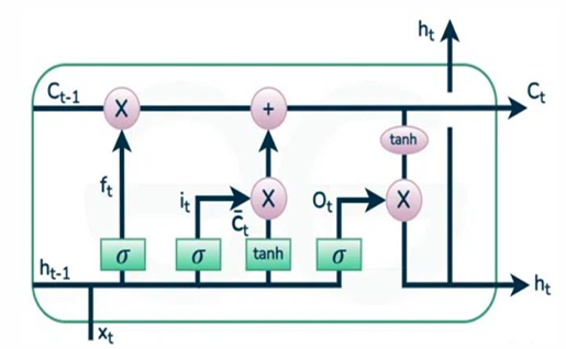 The operation addition and multiplication are point operations. Finally in this unit the information to out put gate has an equation: \[o_t= \sigma(w_oh_{t-1}+u_ox_t+b_o), \tag{13}\] \[h_t= o_t*tanh(c_t), \tag{14}\] where \(w_f\),\(u_f\), \(w_i\), \(u_i\),\(w_c\), \(u_c\),\(w_o\),\(u_o\) are weights of the forget, input, input modulation and out put gets respectively. \(b\) the bias term. \(\sigma\) and \(tanh\) are the sigmoid(logistic) and hyperbolic tangent activation functions respectively and \(h_t\) is the hidden state.