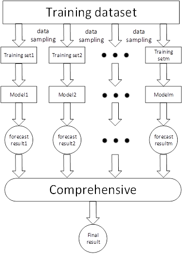 The core idea of bagging is to operate some basic models in parallel, and finally calculate the average of the output results of these models. However, there are still some problems with this algorithm. If the input basic model is a weak model, then the output result is likely to be weak. The detailed operation process is shown in Figure 1.