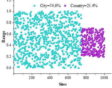 and the Attention-IDCNN-based named entity reco Ten representative novels of the Ming Dynasty are selected as samples, such as Romance of the Three Kingdoms, Water Margin, Journey to the West, and Three Words and Two Beats, etc., gnition model is applied to recognize the entities of the characters and locations therein, and the results are statistically sorted out, and the results of the entity recognition of the characters of the sample literary works are shown in Figure 3 The entity recognition results of the locations of the sample literary works are shown in Figure 4. The character sections in the sample novel texts are categorized into four categories: scholars, peasants, craftsmen and merchants, accounting for 19.8%, 13.1%, 44.7 and 22.4%, respectively, and the identities of workers and merchants have a higher frequency of appearance in the sample novel texts. Meanwhile, in terms of location entity identification, locations located in cities and locations located in rural areas in the sample novel texts accounted for 74.6% and 25.4%, respectively.