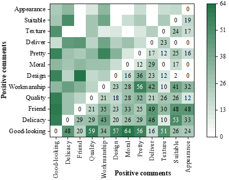 | Emotional value | 1 | Appearance design | Beautiful, exquisite, design, pretty, atmosphere, small, beautiful, aesthetics, size | 0.227 |