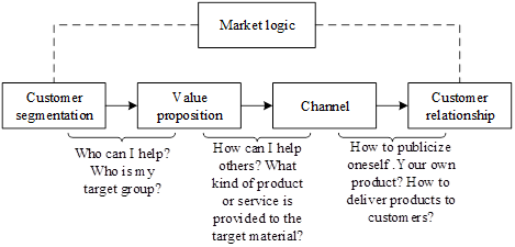 In Enterprise H’s business model the market logic is the bridge for the effective operation of the whole business model, which is mainly composed of four elements: customer segmentation, channel access, customer relationship, and revenue source, and its logical relationship is shown in Figure 6.