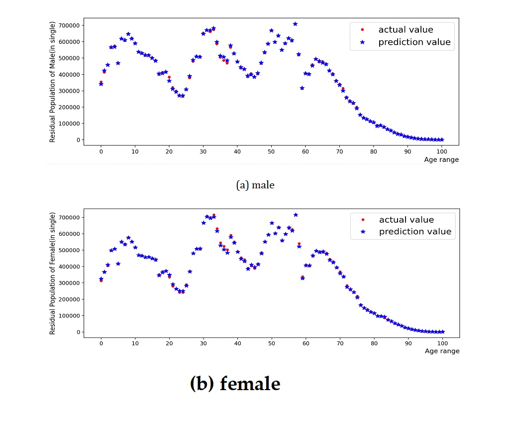 1) Data reconstruction: To ensure the data met the operational requirements of the discrete population development equation, the census data were reconstructed by gender and age using annual population sampling data and other statistical sources. This approach significantly expanded the training dataset’s capacity and addressed the issue of insufficient data size.