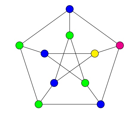 Figure 1 A 4-coloring of the Petersen graph with no polychromatic dominating set