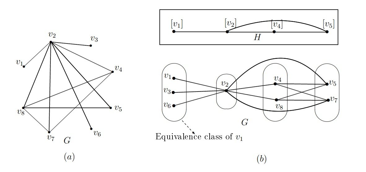 Example 3.1. For the graph \(G\) given in Figure 1a, the reduced graph \(H\) and representation of \(G\) as \(H\)-join are given in Figure 1b.