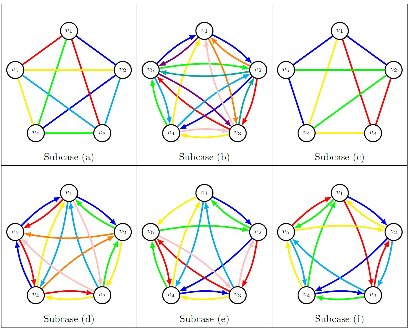 Figure 2 illustrates an example of such a decomposition. We label the vertices \(v_1,…, v_5\), represent the edge partition using a different color for each part, and omit single-edge parts from the picture.