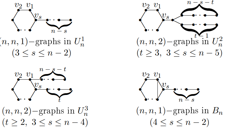 Equality occurs if and only if \(G\in U_{n}^{1}\), \(n\geq 5, 3\leq s\leq n-2\), or \(G\in B_{n}\), \(n\geq 6, 4\leq s\leq n-2\) (see Figure 5).