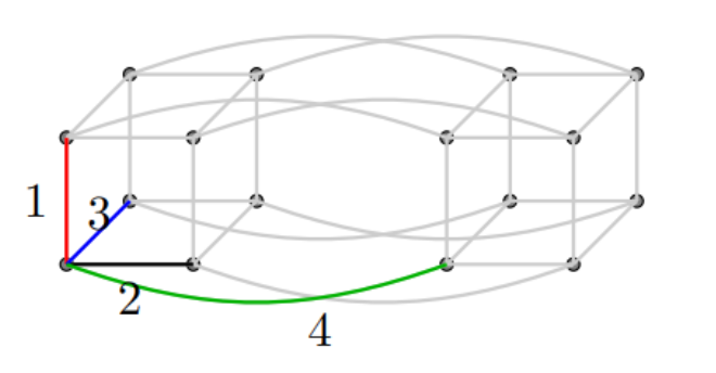 Remark 2.1. If the initial vertex of a path is \(\textit{0},\) then the path is completely determined by its edge direction sequence. So, for convenience, we will represent a path \(P\equiv P(\textit{0},S),\) where \(S=(i_1,i_2,\ldots,i_k),\) by \(P=(i_1,i_2,\ldots,i_k)\) only.
