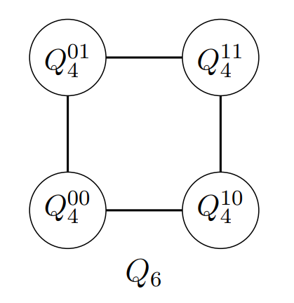 Moreover as \(Q_6\) contains four copies of \(Q_4\) and perfect matchings in all of them are selected. Then \(\displaystyle\bigcup_{i=1}^8 M_i\) gives a perfect matching in \(Q_6,\) where \(M_i\) is the set of edges from \(Z_i,\) contributing to a perfect matching of \(Q_6.\)