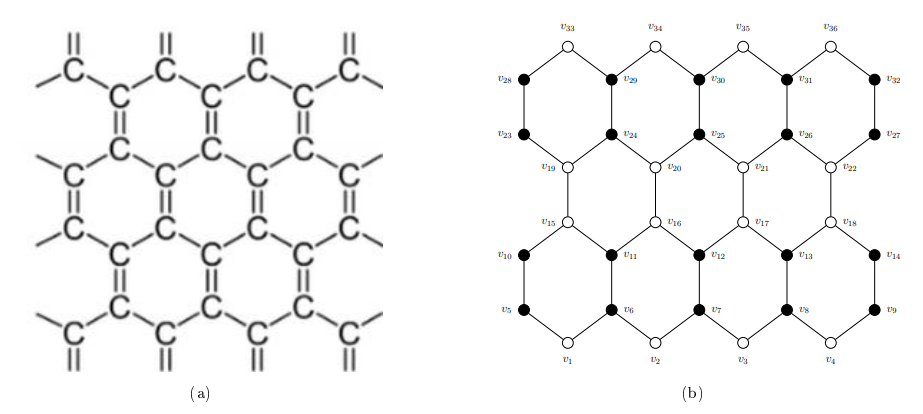 For better understanding, let us consider a graphene molecule (C) that has a structure similar to that of the comb product of cycles. Graphene is an allotrope of carbon in two dimensions. Its constituent carbon atoms are arranged in a hexagonal pattern. A single graphene sheet is made up of a single layer of carbon atoms organized in a honeycomb pattern. The vertices represent the carbon atoms, and the covalent bonds between the carbon atoms are represented by edges, as shown in Figure 8.