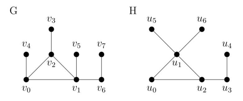 Our next goal is to characterize the certified critical leaves and support vertices using the private neighbourhood notation and shadowed vertex definition. Recall that the private neighbourhood \(pn[v, S]\) of \(v \in S\) is defined by \(pn[v, S] = N[v] – N[S – \{v\}]\) for \(S \subseteq V_G\) of the graph \(G\). Equivalently, \(pn[v, S] = \{u \in V \colon N[u] \cap S = \{v\}\}\). Each vertex in \(pn[v, S]\) is called a private neighbour of \(v\). A vertex \(v\) of a graph \(G\) is said to be shadowed with respect to a certified dominating set \(D_{{\rm cer}}\) if \(N_G[v]\subseteq D_{{\rm cer}}\), while \(v\) is half-shadowed if \(|N_G(v) \cap D_{{\rm cer}}| = 1\). Consider the graph \(G\) from Figure 1, in which all vertices belong to the minimum certified dominating set \(D_{{\rm cer}}\). Thus, every vertex \(v\) of \(G\) is shadowed, and it is easy to check that \(pn[v,D_{{\rm cer}}] = \emptyset\). For the graph \(H\) in Figure 1, the unique \(\gamma_{{\rm cer}}\)-set \(D_{{\rm cer}} = \{u_1,u_3\}\), and we have \(pn[u_1,D_{{\rm cer}} ] = \{u_0,u_1,u_5,u_6\}\) and \(pn[u_3, D_{{\rm cer}}] = \{u_3,u_4\}\).