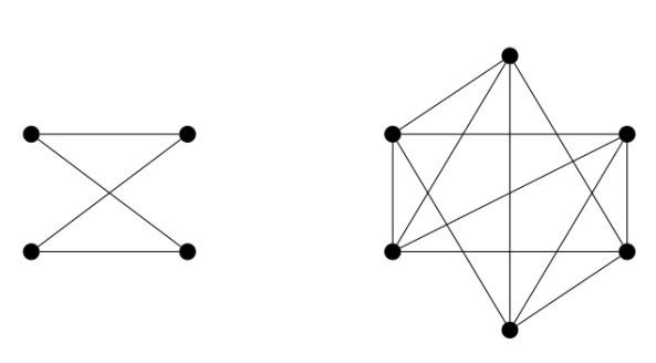 Notice that the complete graphs \(K_{2n}\) with \(1\)-factor removed are complete graphs \(K_{2n}\), where we remove a perfect matching. Figure 3 illustrates the complete graphs \(K_4\) and \(K_6\) with \(1\)-factor removed. It is easy to check that these graphs are \(2\)-vertex certified domination critical graphs.