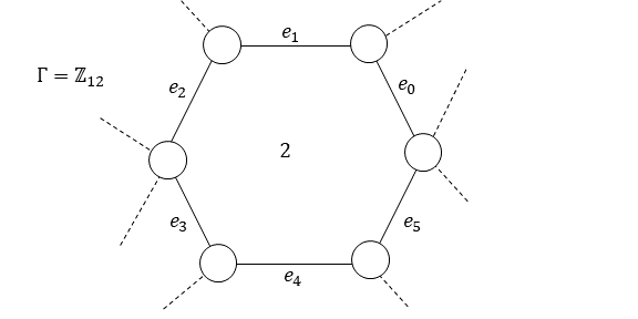 Lastly, we could generalize to nonabelian groups (and change to multiplicative notation as appropriate), at least in the \(2\)-connected case where the boundary of each region is a cycle. As long as elements are multiplied in consecutive clockwise order, then elements multiplying to \(1\) will do so no matter which element is chosen as the starting element. To see this, note that if \(g_1g_2…g_k=1\), then \(g_1g_2…g_{i-1}\) and \(g_ig_{i+1}…g_{k-1}g_k\) are inverses for all \(i\) and commute; therefore \(g_ig_{i+1}…g_{k-1}g_kg_1g_2…g_{i-1}=1\) for any choice of \(i\). Thus the definitions of \(\Gamma\)-zonal, \(\Gamma\)-cozonal generalize, as well as their generative and strong extensions. However, the proof of Lemma 4.3 does not generalize, as this proof makes use of reordering and recombining terms. Therefore, a careful examination of the nonabelian case would be required in order to determine whether Theorem 4.5 generalizes.