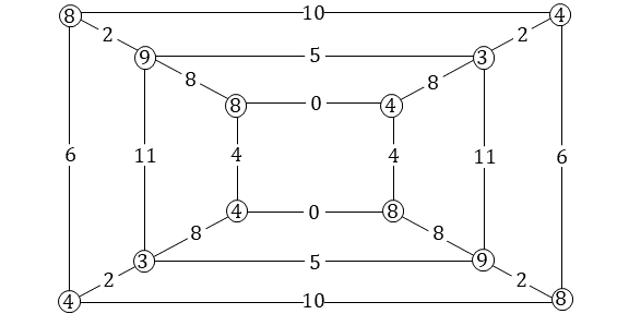 While all of our examples thus far of strong \(\Gamma\)-zonal labelings have been of regular graphs, this need not be the case. In Figure 8 we exhibit a \(\mathbb{Z}_{12}\)-zonal labeling of a generalized prism, as well as the induced proper vertex cyclic edge \(\mathbb{Z}_{12}\)-coloring.