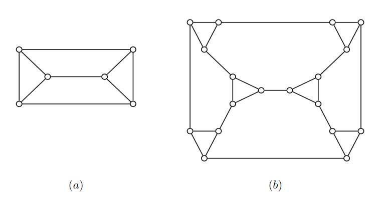 A graph \(G\) and its cubic inflation \(CI(G)\) are shown in Figure 2. From the definition we have \(n(CI(G))=\sum\limits_{v\in V(G)}2deg(v)=4m(G)\) [2].