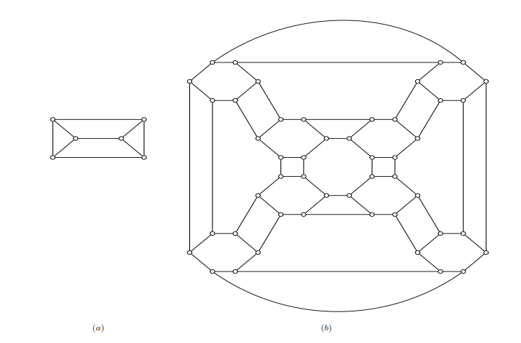 Definition 2.10. Let \(G\) be a connected graph without isolated vertices. The cubic inflation of graph \(G\) denoted by \(CI(G)\) is obtained as follows: First we replace every vertex \(v\) with a cycle \(Q_{v}\) of length twice the degree of \(v\) and then replace every edge \(uv\) of \(G\) by two edges joining \(Q_{u}\) and \(Q_{v}\).